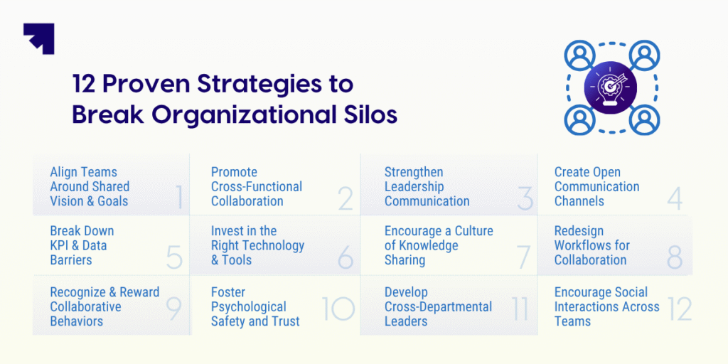 Organizational silos are a natural byproduct of growth, but they do not have to limit success. By aligning teams around a shared vision, fostering open communication, and encouraging cross-functional collaboration, companies can build a culture of unity and innovation. Breaking silos is not about tools alone; it is about trust, leadership, and a shared commitment to success.Start small by implementing one or two of these strategies today. Over time, these steps will create a more connected organization where collaboration is not the exception, but the norm.